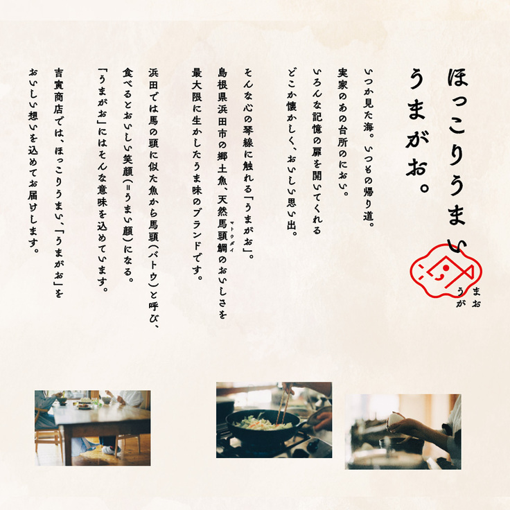 しかしながら、「バトウ」では全国的知名度が無く、都会地で売れないとの悩みを持っていたところ、今回、島根県の支援を得て、県外展開商品として商品規格を変更して、「うまがおラーメン」「うまがおうま味だし」の商品発売に至りました。『うまがお』は美味しいものを食べた時の美味しい顔と馬頭鯛の馬ずらをあわせたもので、商品のブランド名としました。