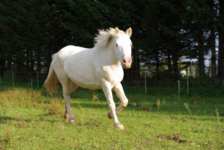 2019年生まれ、1才の女の子。ドサンコとコネマラポニーという品種のミックス。毛色は芦毛。