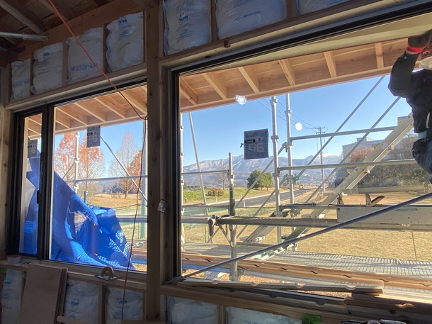 窓からは蔵王連峰!そしてすぐ目の前にはロイちゃんのいる柵小屋があります。中からも乗馬をしている様子がしっかり見えるように大きな窓にして頂きました。
