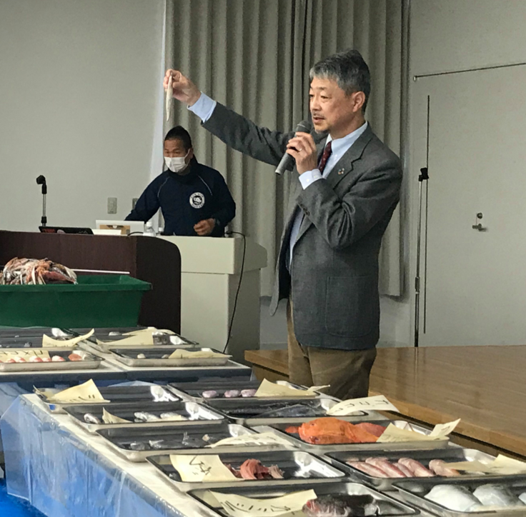 子どもたちはシラスについての思い出や日常でのシラスとの関わりを水圏リーダーに語りかけ、地元への愛着を深めていました。大変有意義な探究学習を進めていただきました。この度、東京海洋大学海街コミュニティ・スクール推進本部を立ち上げる、と聞いて大変嬉しく思っております。