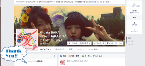 皆様はじめまして!新潟県立大学3年の酒井美奈と申します。私は新潟いとしげプロジェクトに所属しており、現在は主にFacebookを利用して新潟の魅力を世界中に発信しています。現在、私たちが運営するFBページのファン数は県内2位の約15000人にまで達しました!ファンは主に外国の方が多く、みなさんコメントで「もっと新潟の魅力を知りたい」と言ってくださっています。