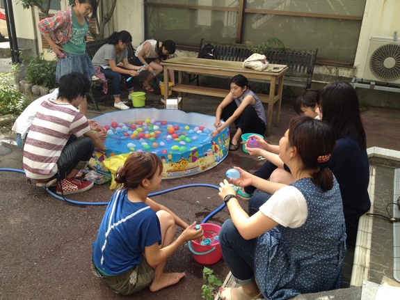 この水風船と使用している備品も学生が立て替えて購入したものです。