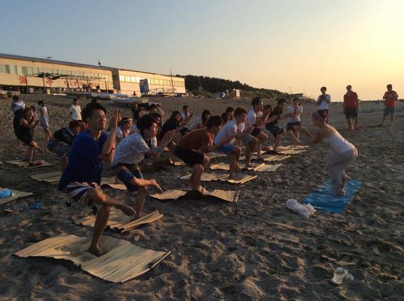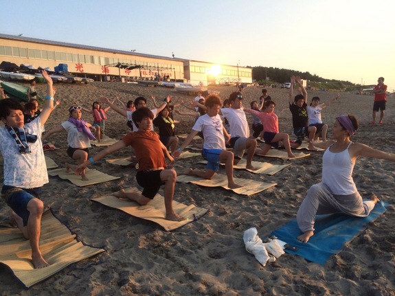 17:30~日が傾きかけてきた頃、浜辺でヨガを行いました。
