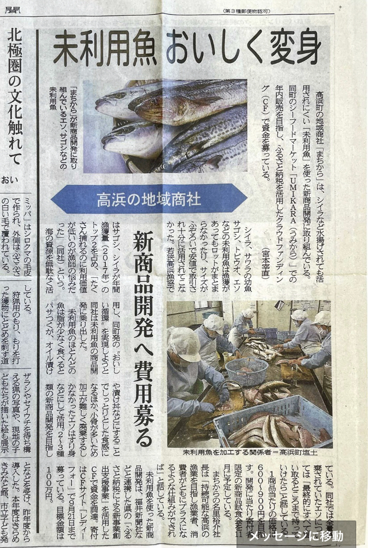 2021年7月7日に福井県高浜町にて新たにオープンした海と旅するマーケットUMIKARAにある「うみから食堂」内にて、ご支援者様限定試食会を開催します。開発中の新商品の試食会を開催します。