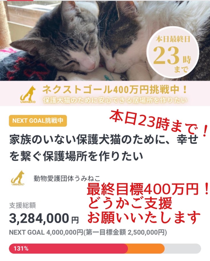 OneforMee@丹波 ☆安定した保護活動&医療費の継続支援募集