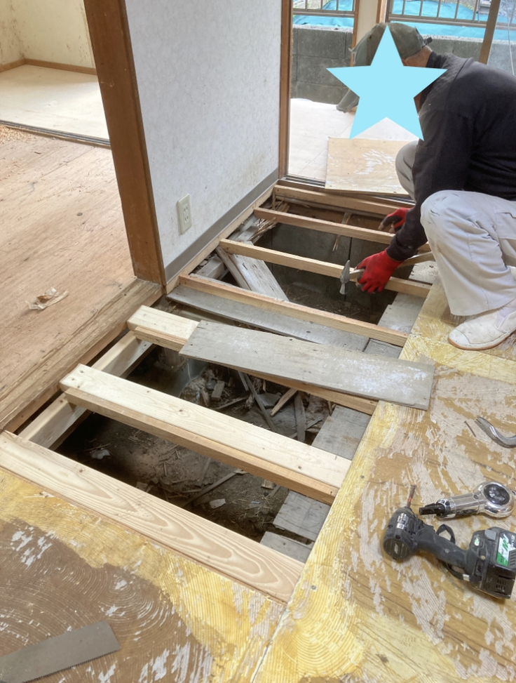 外装の下地、内装の床はりを大工さんがしてくれました!!
