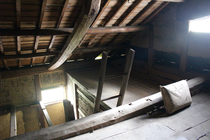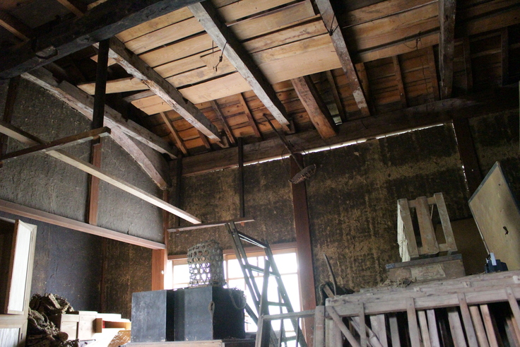 絵画や彫刻など、美術制作系の活動スペースです。2階の1部屋とそこから延びる屋根裏部分も合わせて、最大で3名ほど制作可能になるのではないかと思います。