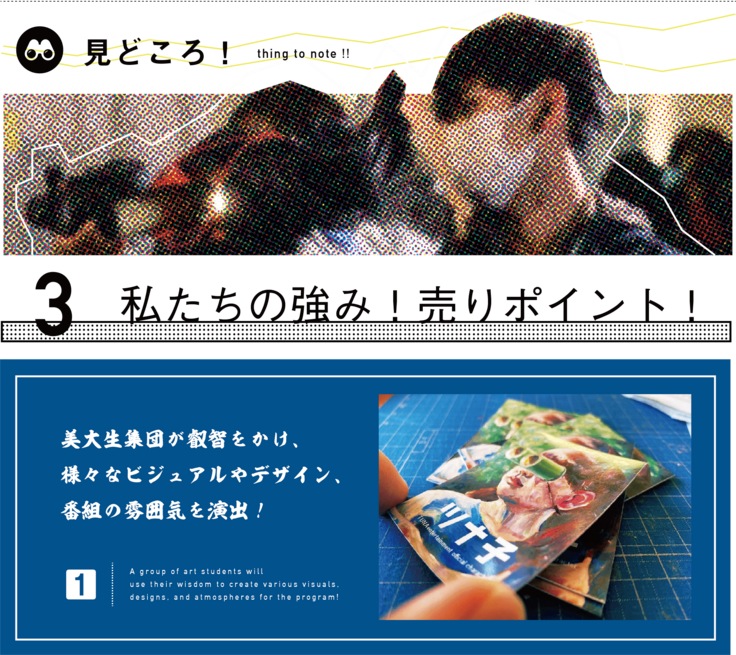 ①美大生集団が叡智をかけ、様々なビジュアルやデザイン、番組の雰囲気を演出!