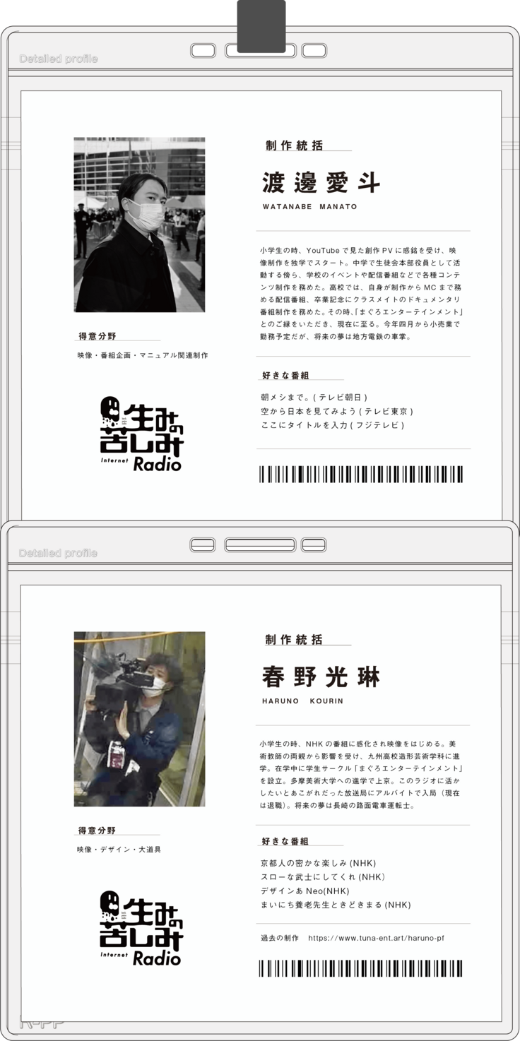 『生みの苦しみラジオ』 2024年3月15日放送予定 仕事でも創作活動でも、物を作る(=生む)にはいろんな苦しみがある! 思ってた通りにならない!なにも浮かばない!締切がピンチ!今までの自分がどのようにして数々の物を生み出していたのかさえ分からなくなってくるなんてことも。そんな恐術や絶望の果てに出てくる行動や言動。その時の食生活など様々な視点から「生みの苦しみ」を面白おかしく分析するインターネットラジオ番組です! 多摩美術大学の学生有志、京都、金沢の学生、九州発の学生サークルまぐろエンターテイメントの一同が福岡の自ら建設したラジオ放送ブースに集結しインターネットを通して生配信番組を届けます。