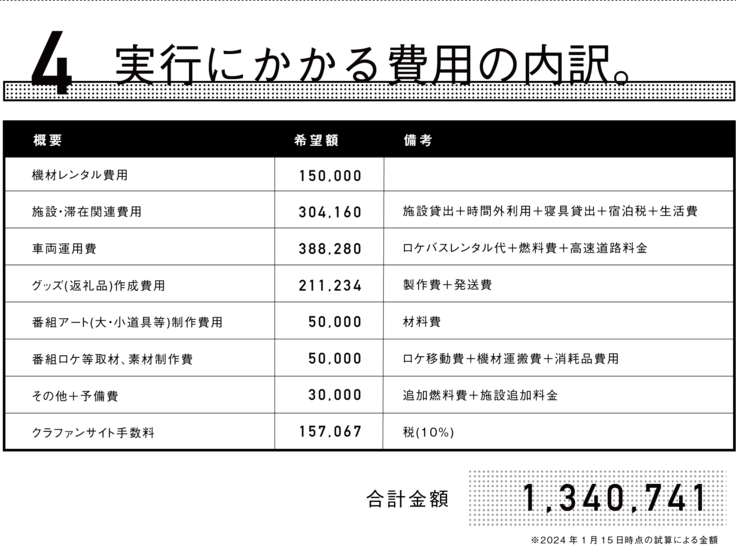 ※企画の状況や、内容の変更で多少費用の内訳が変更する場合があります。