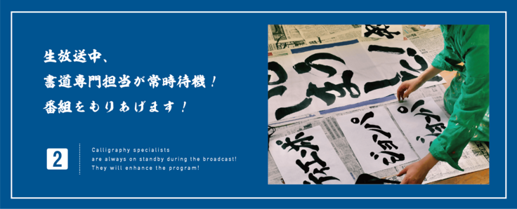 ②放送中、書道専門担当が常時待機!番組をもりあげます!