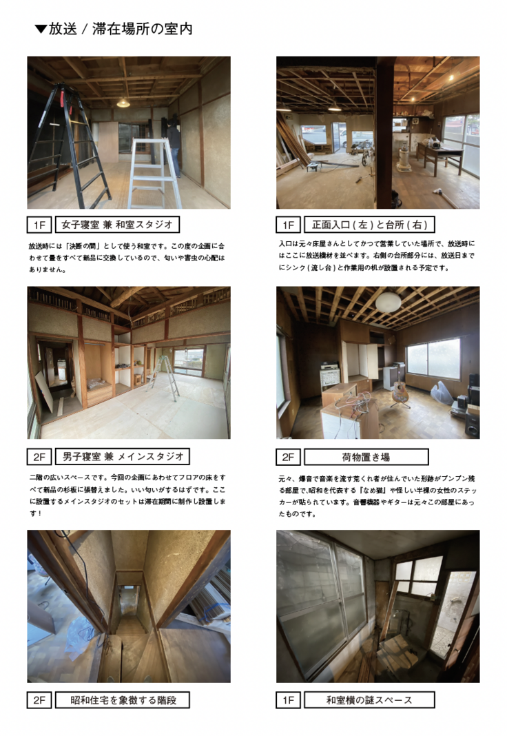 考えに考え抜いて会議を重ねた結果、『空き家特有のくたびれた感じも「生みの苦しみ」というテーマにあっているのでは...!?』という意見もあり『放送の面白さ』をとって『元床屋さんの廃墟』で放送することになりました。