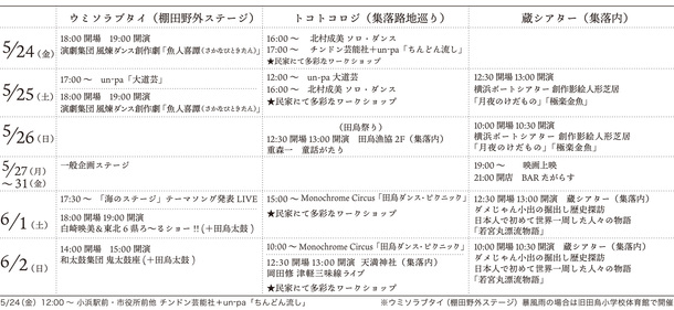 ※パスポートでは雨天会場(旧田烏小学校体育館)の全日程・全演目でも使えます。