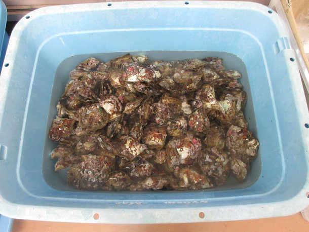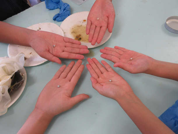 以下の写真は真珠を取り出す体験授業を行った時の写真です。