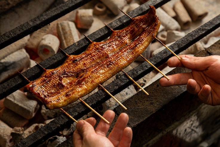 うなぎは、関東と関西で、焼き加減が異なります。関東はふっくらとした柔らかい食感、関西は皮がパリパリで硬めの食感が好まれます。当店では、備長炭を用いてそのちょうど中間である「皮はパリパリ、身はふっくら」を職人の手焼きで仕上げており、今まで経験したことのない食感を楽しめます。