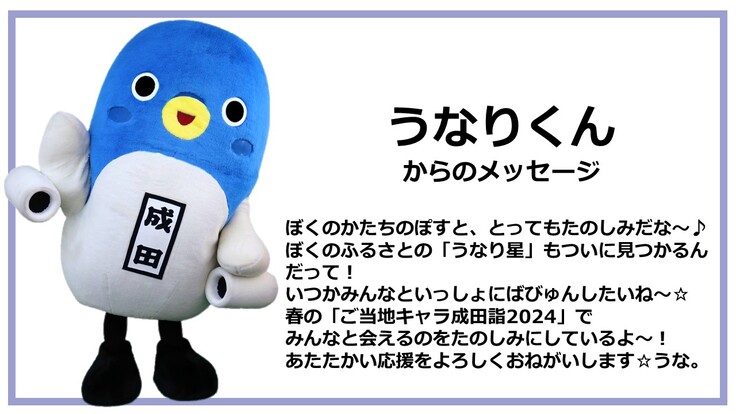 成田名物の「うなぎ」と成田国際空港を飛び交う「飛行機」がモチーフのキャラクターで、