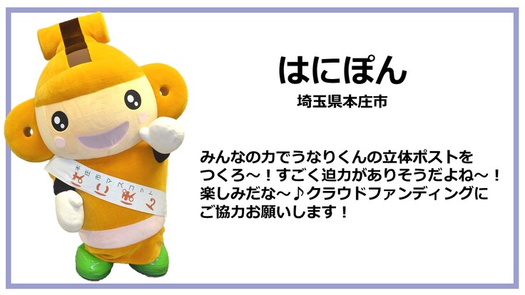 本プロジェクトが達成できましたら、ぜひうなりくんのポストに会いに来て、記念撮影してくださいね!