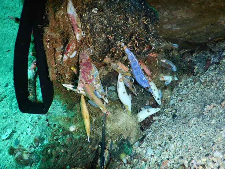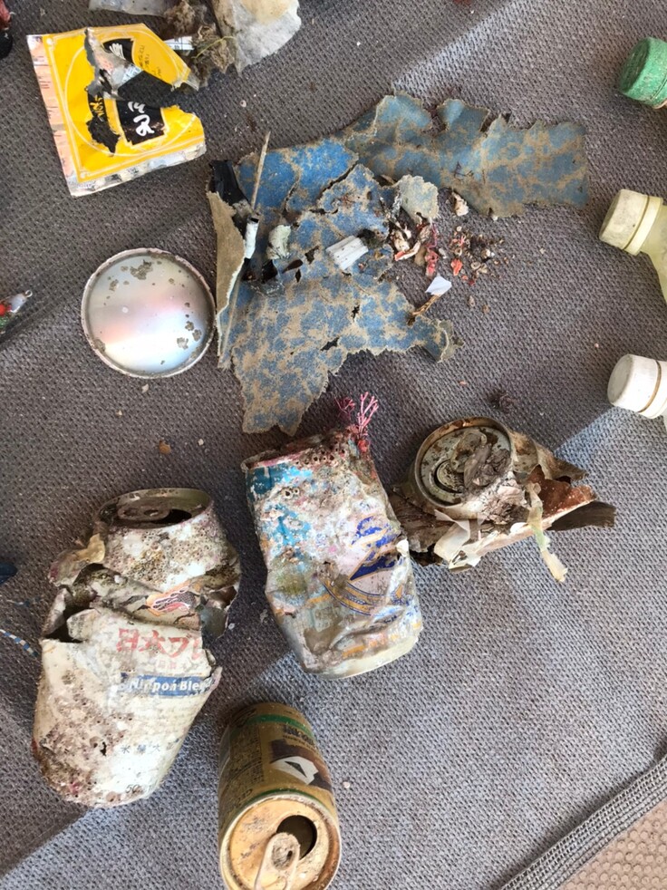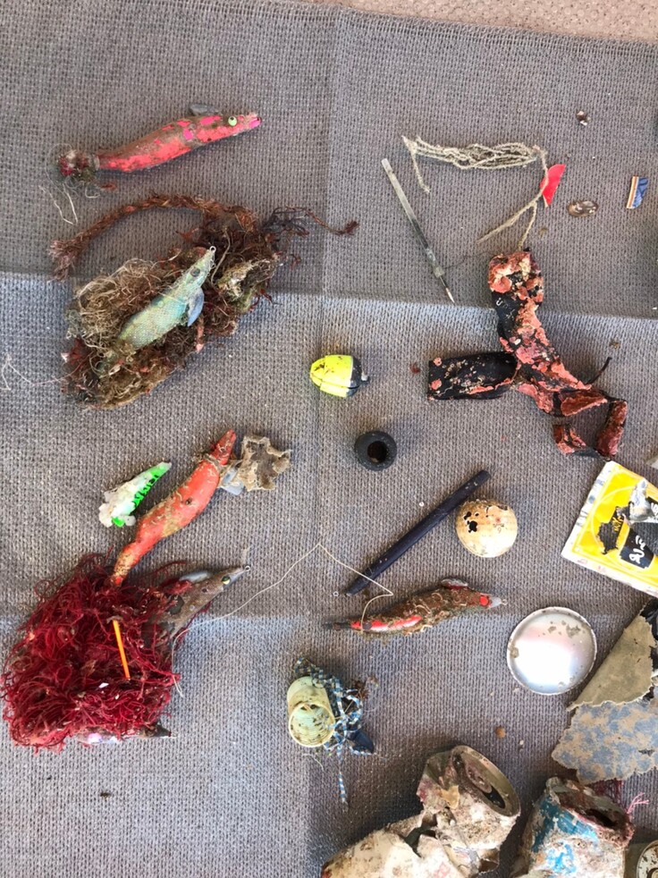 エギや漁網、ビン、缶、ペットボトルのゴミが目立ちました。