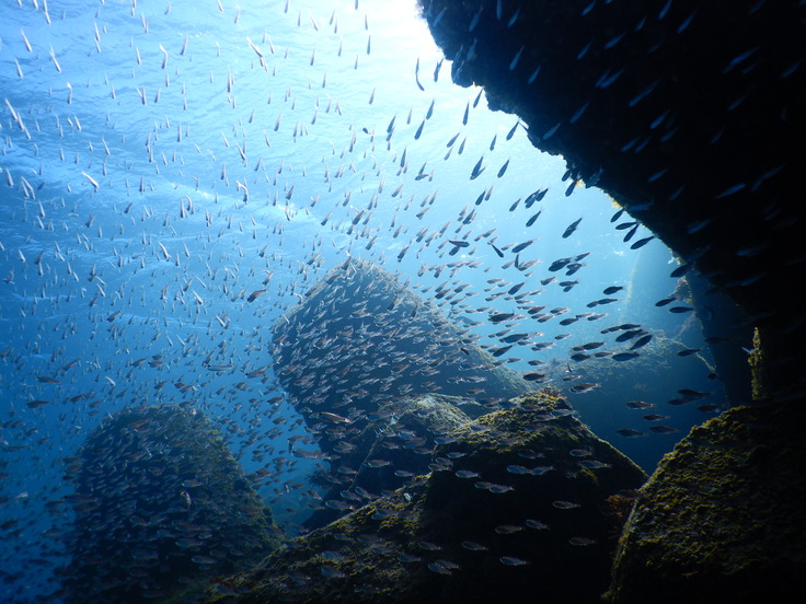 テトラポッド帯でゴミを拾っている時、ふと上を見上げると、ネンブツダイが群れていました。川奈の海は魚影が濃く、とても綺麗です!