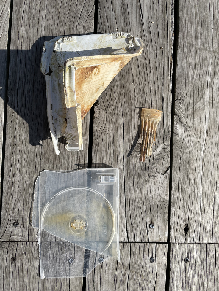 拾えたゴミは上の写真にある通り、DVDケース、プラスチック容器、プラスチック片の3点です。全力を尽くしましたが、皆様のご期待に添えるようなたくさんのゴミは回収できませんでした...申し訳ありません。海況悪化によりダイビングポイントがクローズしてしまったことで、2本目の潜水は断念せざるを得ませんでした。