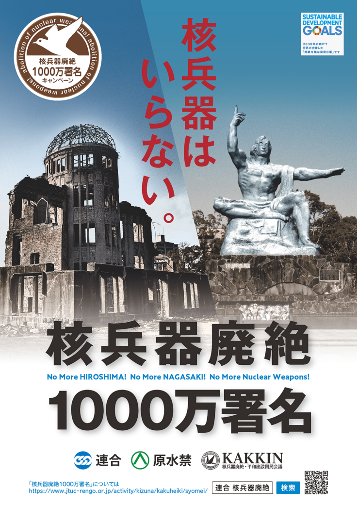 連合は核兵器反対・恒久平和を強く求めています。