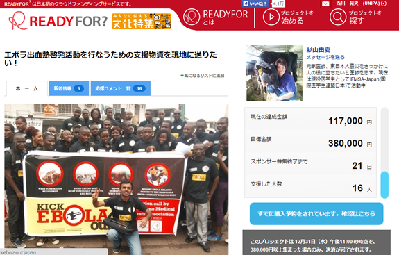 杉山さんの「エボラ出血熱啓発活動を行なうための支援物資を現地に送りたい!」というプロジェクトを、僕も応援しています。