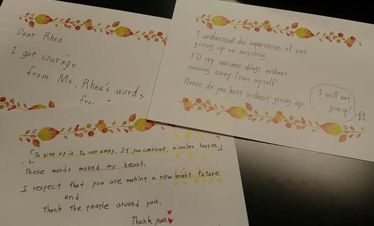 現地の貧困の苦労から努力し続けたレアの姿勢は、ロールモデルとして多くの日本の生徒さんたちに感銘を与えています。生徒さん自身の葛藤を綴ったメッセージやエールをたくさんいただいているので、そのメッセージに1つ1つ応えられるよう恩返ししていきたいと思っています。