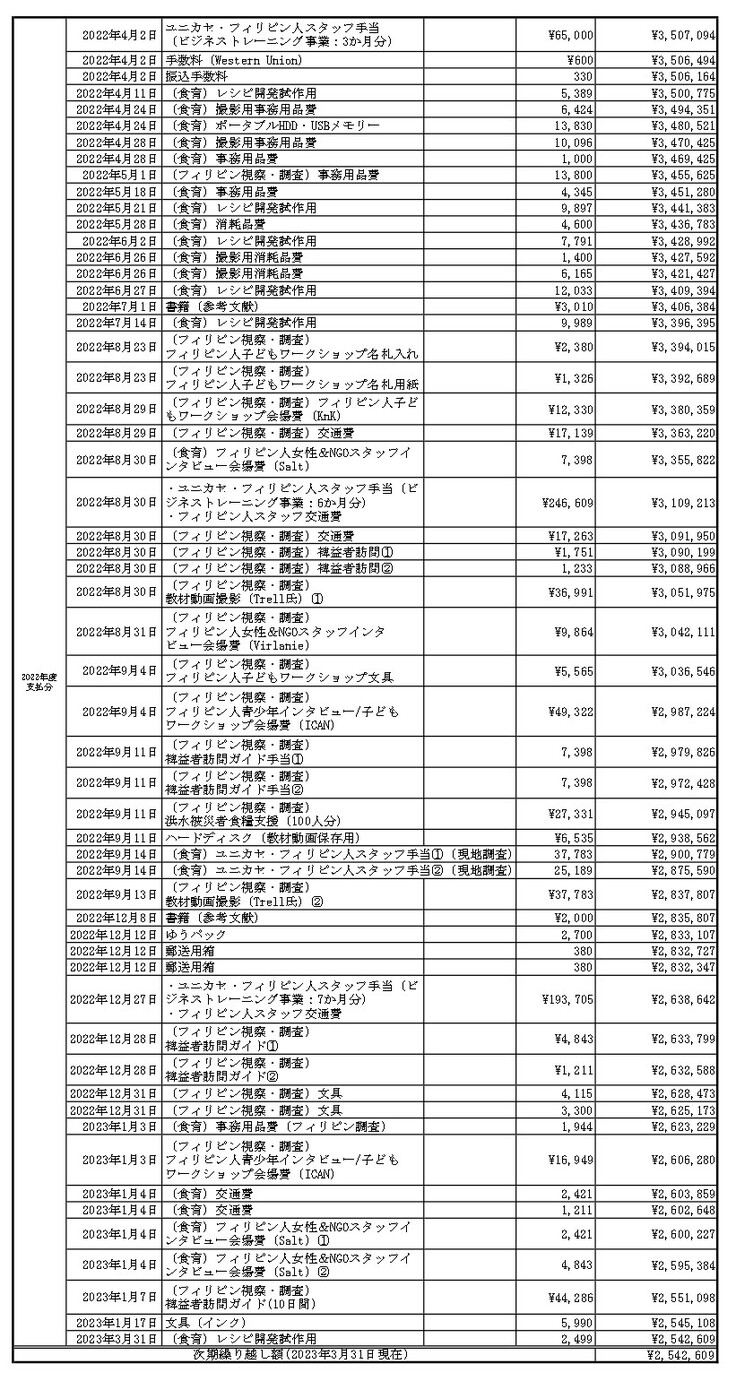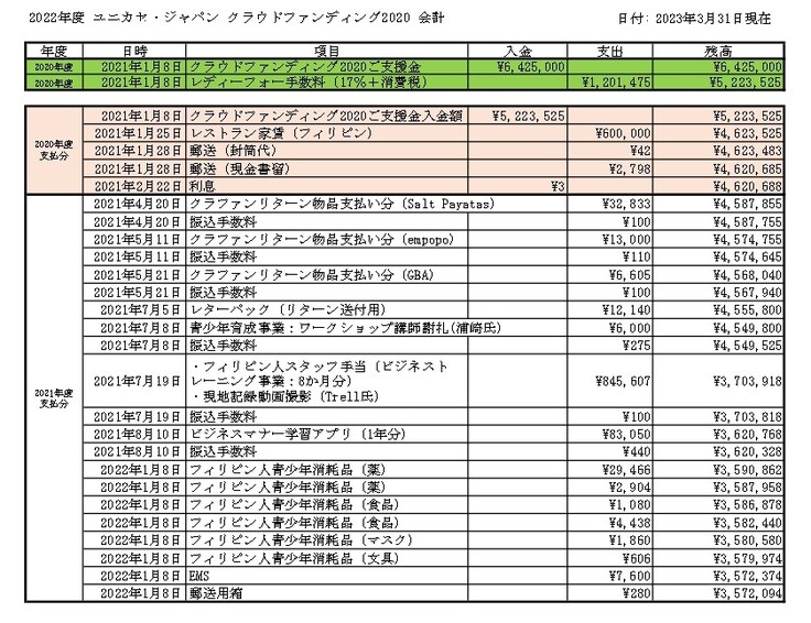 さて、皆様よりお預かりいたしましたクラウドファンディング2020ご支援金につきまして、本年度の総会にて承認されました2022年度会計資料、並びに各事業の進捗をご報告いたします。ご高覧いただければ幸いに存じます。