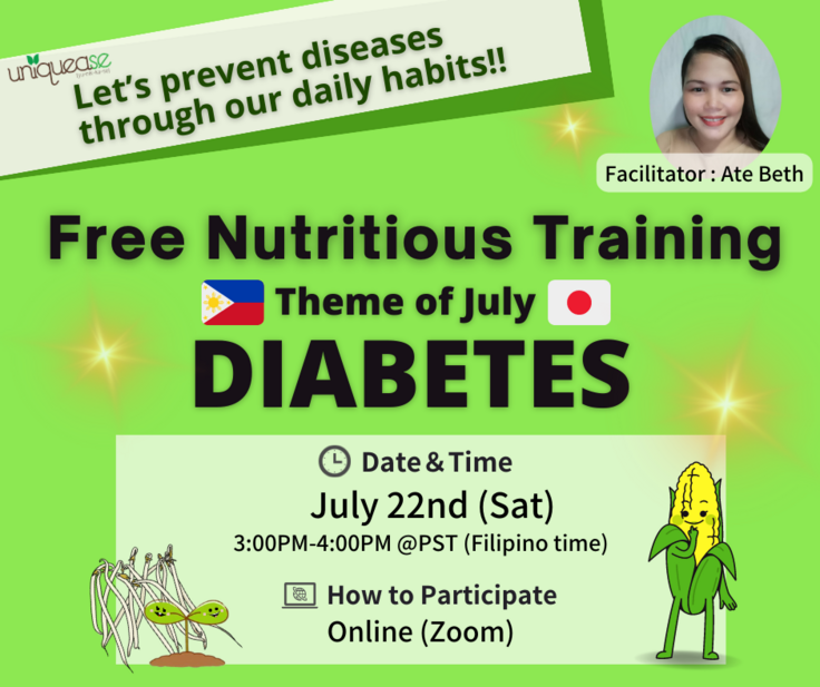さらに、日常的に食と健康の相関性を学び、実際に健康的な食事や調理を実践するといった行動変容を実現していただけるよう、7月から毎月オンライン食育を実施し、8月には対面式食育の実施を企画しています。食育にご関心のあるフィリピン人女性のお知り合いの方がいらっしゃいましたら、お声がけいただければありがたく存じます。