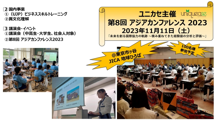 ユニカセでは、国際協力やソーシャルビジネスに関心をお持ちの方々を対象に、講演会を実施しております。10年以上に渡る経験を元にした、草の根活動のリアルをお届け致します。