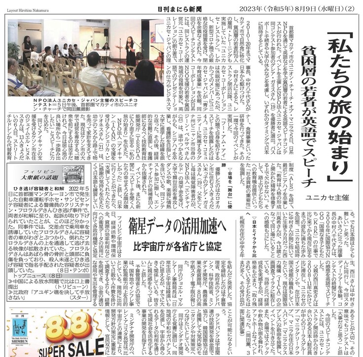 (3) 8月5日:マカティで「ユニカセ・スピーチコンテスト」を開催