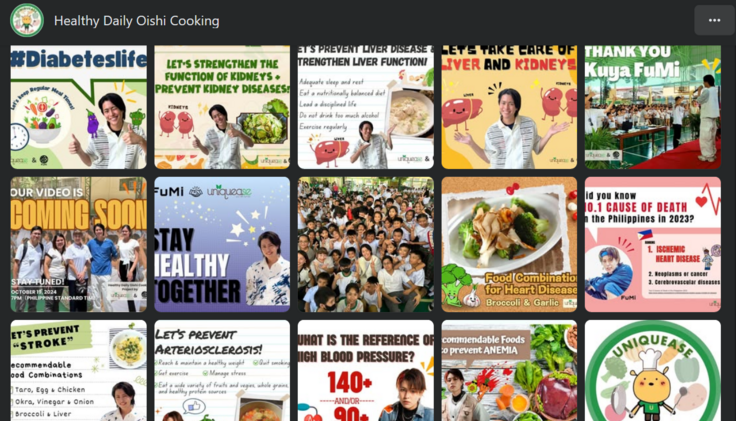 本事業は、栄養や健康的な食事などに関する情報を提供し、フィリピンの方々の生活習慣の改善に寄与することを目指しています。ユニカセ創立以来大切にしてきた健康維持、そして虚血性心疾患や糖尿病といった「非感染性疾患(Non-Communicable Diseases:NCDs)予防」につながるフードコンビネーション(病気予防に効果的な食材の組み合わせ)を中心に、約2年半前から様々な情報をSNSで発信しています。