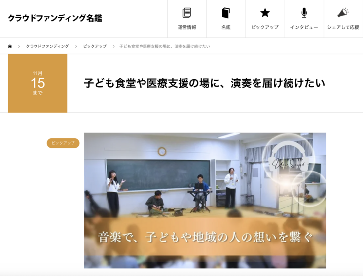 クラウドファンディング名鑑様に、クラファンページを掲載していただきました!