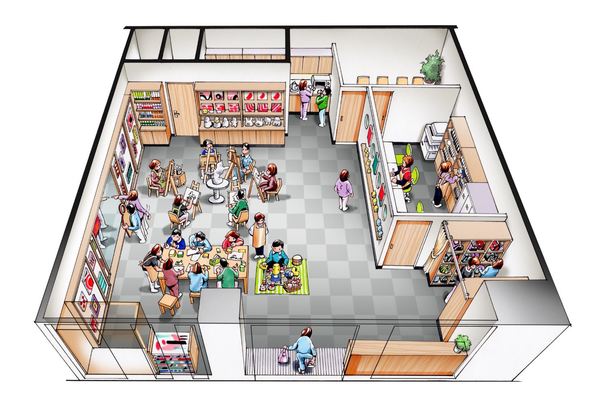 学校の中ではなく、学校周辺のテナントを改修してアトリエを構えることにより、「ずっと開かれている場所」ができます。