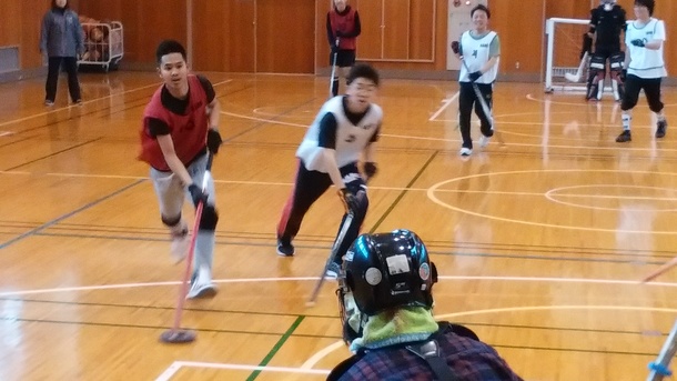 障害の有無や国籍、立場の違いを超えてフロアホッケーを楽しんでします。