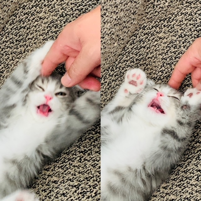 脱衣所に敷いてあるバスマットに横になり、夫と私それぞれ1人ずつに背中を撫でてもらうように促してきて、撫でてあげると喜んで喉をゴロゴロと鳴らしてコミ二ュケーションを取ることが日課でした。