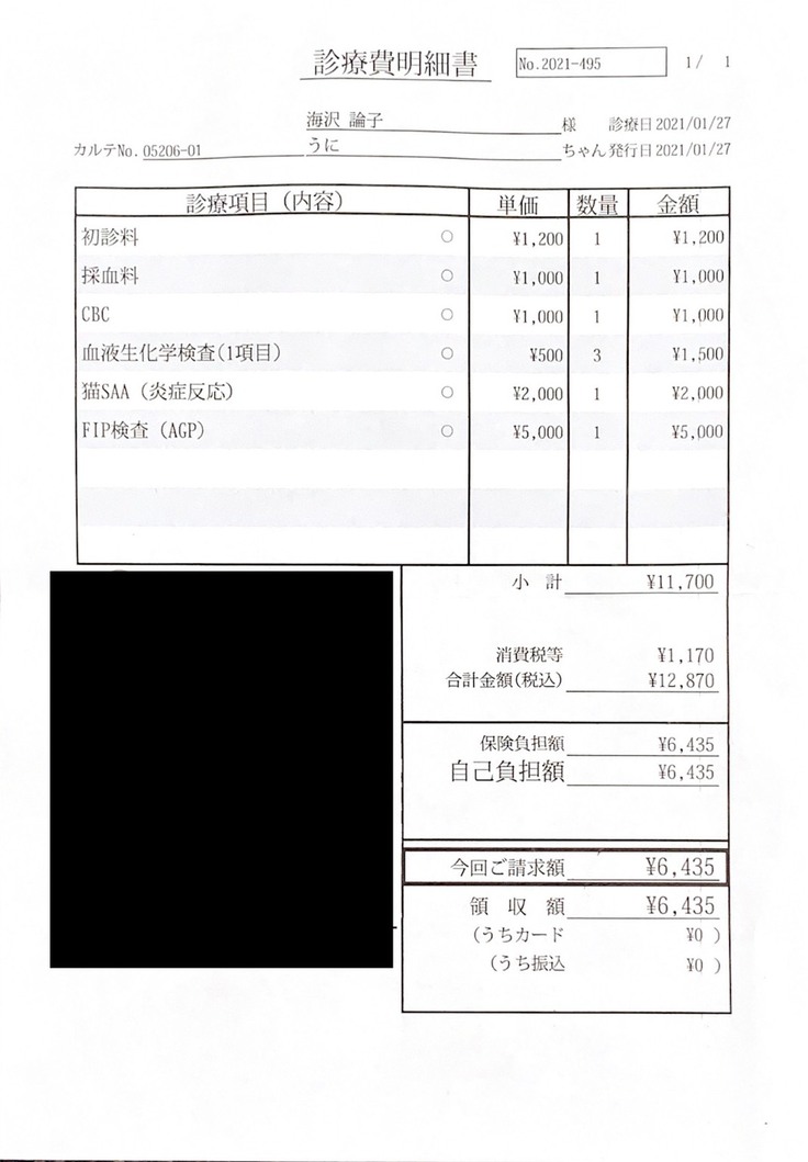 FIPの可能性と診断されましたが、かかりつけの動物病院の医師には、