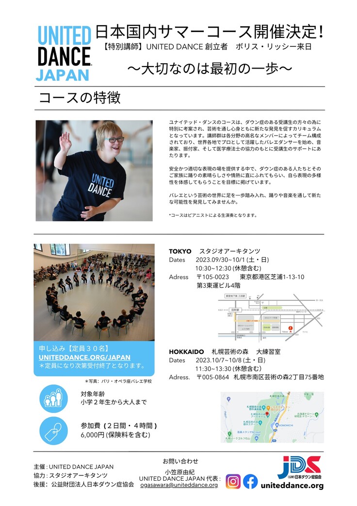 *UNITED DANCE JAPAN サマーコースは日本ダウン症協会後援のイベントとなり、日本ダウン症協会の承認を得て活動しています。