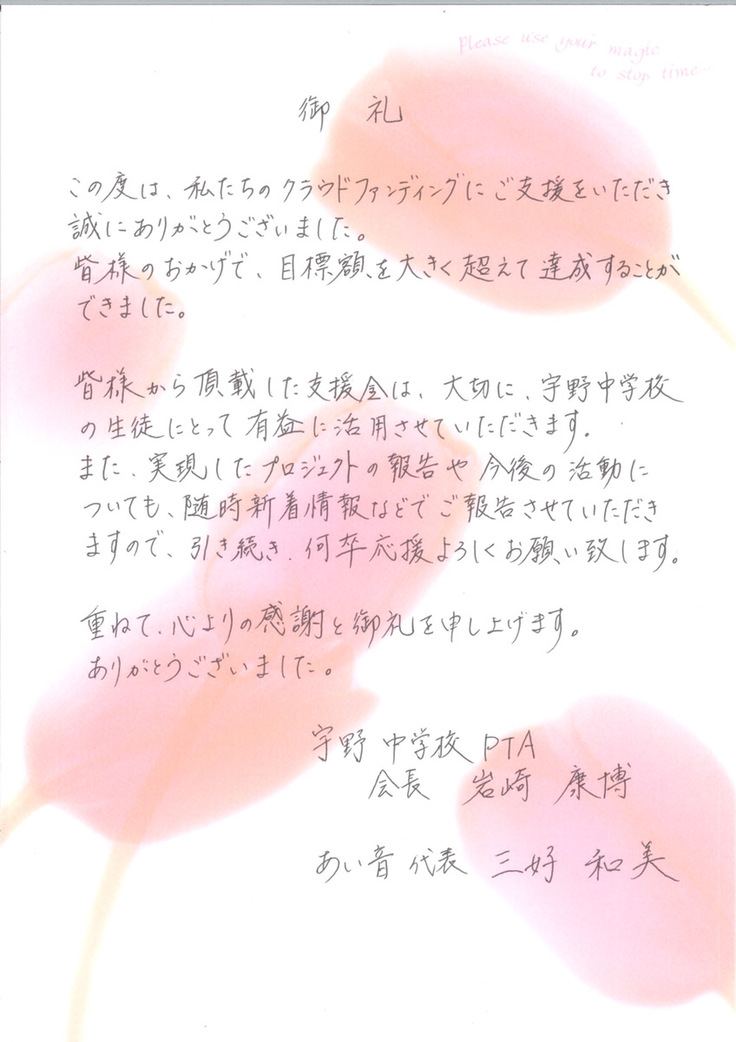 【お礼】ご支援頂きました皆様へ感謝と御礼を申し上げます