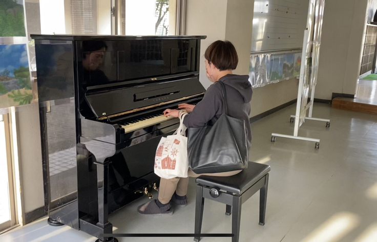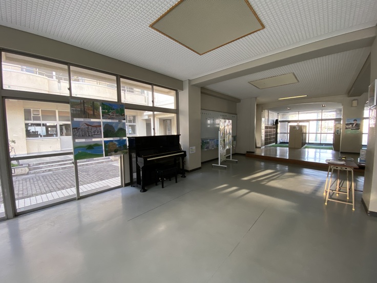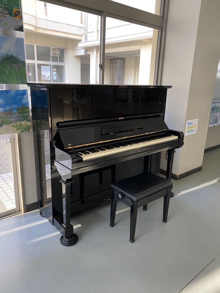 中学校の屋内に靴箱と続く広い活動スペースがあり、そこは必ず生徒が通り抜けする場所とのこと。ここにピアノが設置されました。