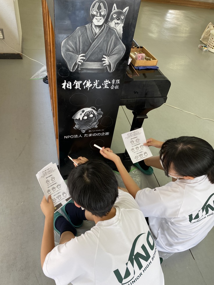 同時に宇野中学校生徒会の生徒さんに絵をデザインしてもらい