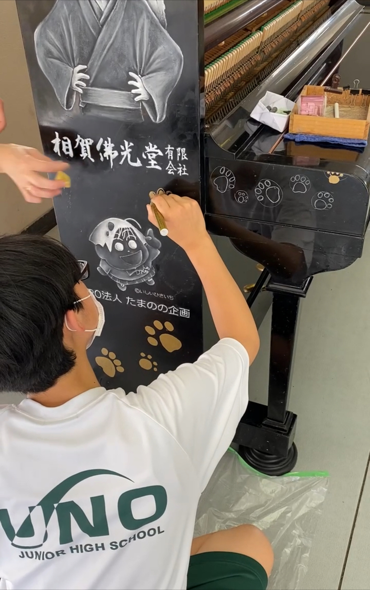 ピアノに宇野中生徒さんが絵を描き入れました♪