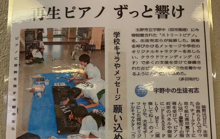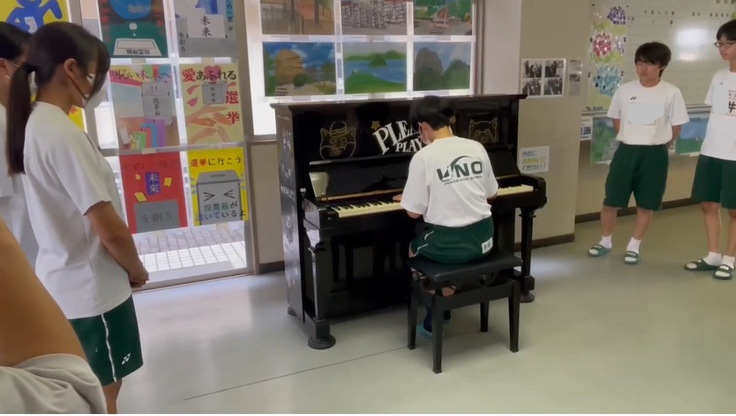 素敵に完成させた宇野中学校内ストリートピアノ。