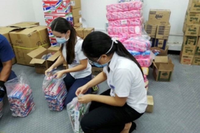 刑務所や隔離センターで暮らす女性たちのために、歯ブラシや生理用ナプキンがディグニティーキットに詰められています。UNFPA El Salvador