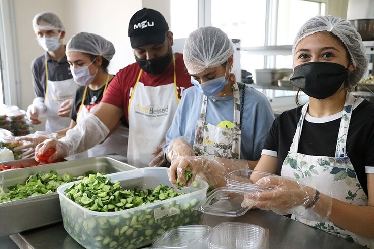 ラマ(下の写真の右端)さんは爆発の直後、破壊されたビルの壁に残る血が付いた手の跡を見て体中が震えたことが忘れられません。彼女は17歳で高校を卒業したばかり。自身は爆発から離れていたので被害を負いませんでした。現在はボランティアで400食の暖かい食事を提供する活動をしています。