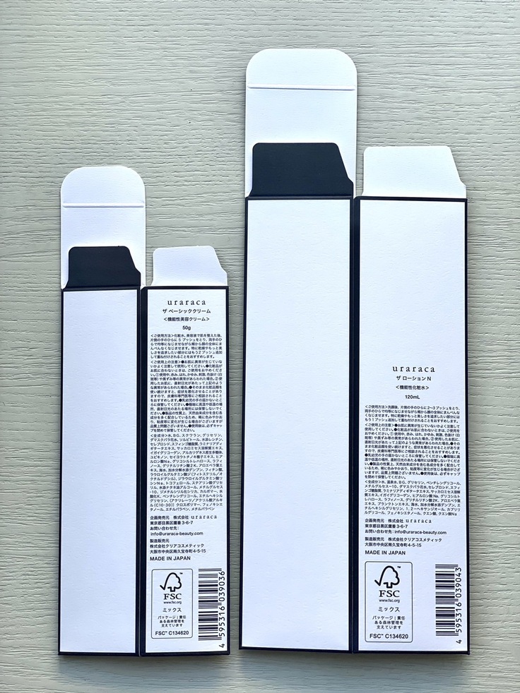 そのひとつに、スキンケア製品の2品にはFSC認証の材質を採用させていただいています。