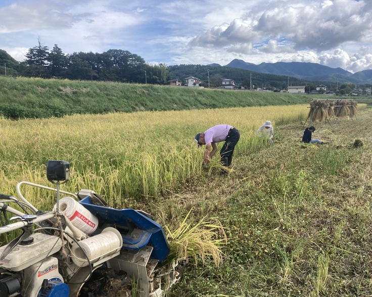 本プロジェクトにもご賛同いただいている方々と一緒に、返礼品の一つであるケミカルフリー米の稲刈りを実施致しました。