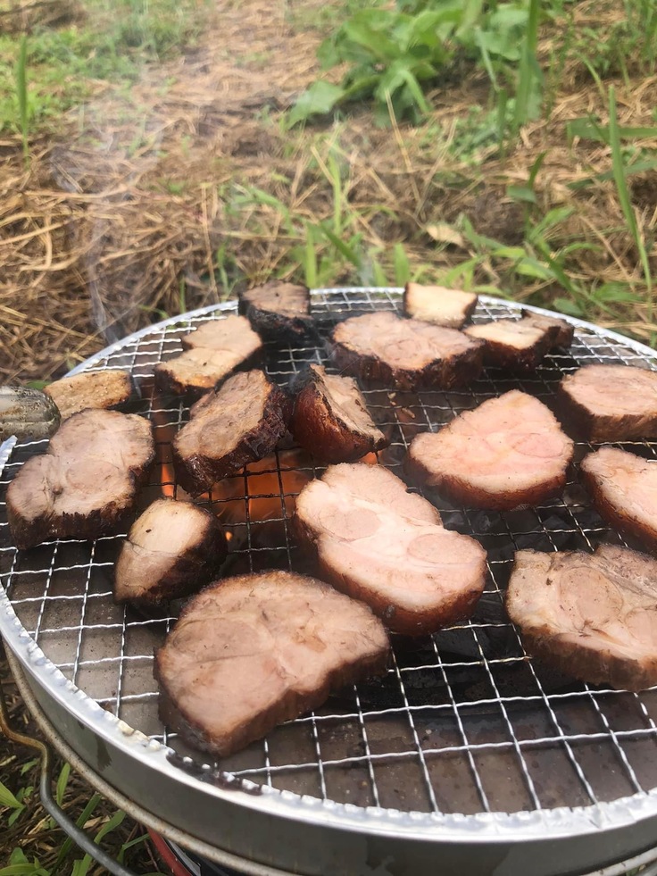 トッピングにはNPOあさひぶーこっこさんのたまごと、本プロジェクトメンバー白倉明さんお手製のスモークを乗せました🎵