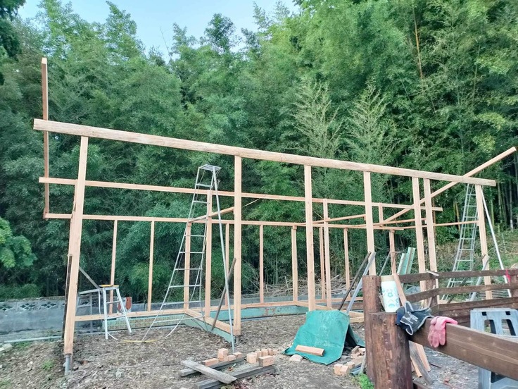 今日も清水馬三昧さんの監修による馬小屋制作の続きを行なっており、屋根を架ける準備が進められております。