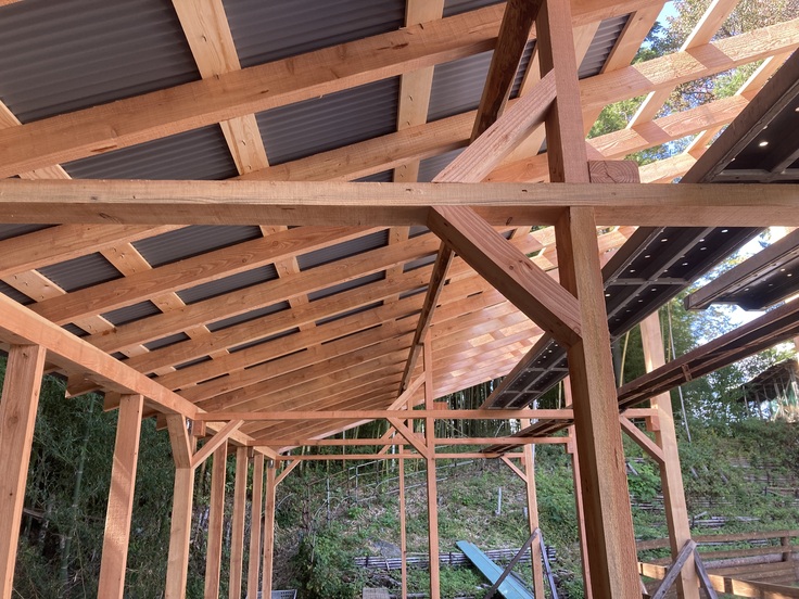 午後からは昨日に続きアプリノの澤海さんがお越しになり、清水馬三昧さんと共に屋根の上側のトタンを張ってくださいました!
